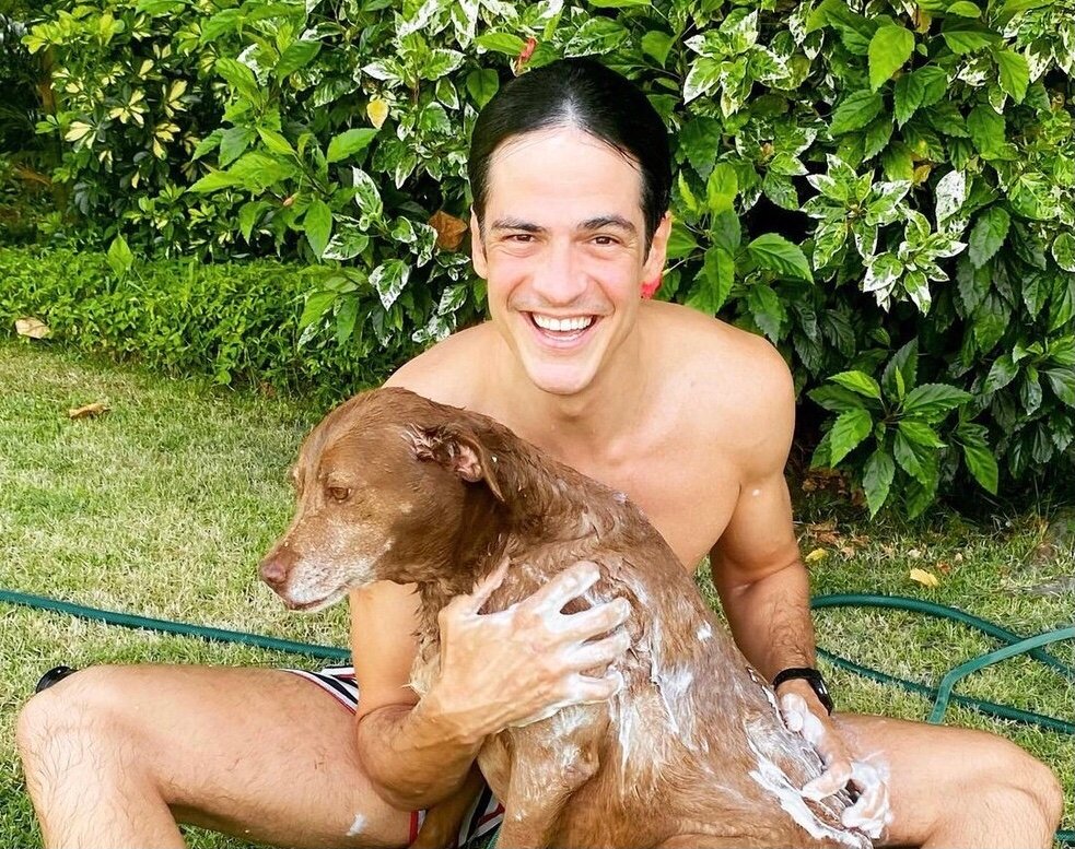 Mateus Solano não perdeu tempo e se refrescou com um delicioso banho de mangueira ao lado de Lili, nesta quinta-feira ensolarada no Rio de Janeiro. O ator aproveitou a higienização de sua cadelinha para espantar o calor que tem feito na cidade, e compartilhou o momento divertido com seus mais de dois milhões de seguidores.
